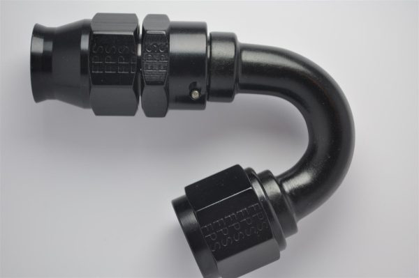 Fitting, Hose End, Real Street, 150 Degree, -8 AN, Aluminum, Black Anodized, Each