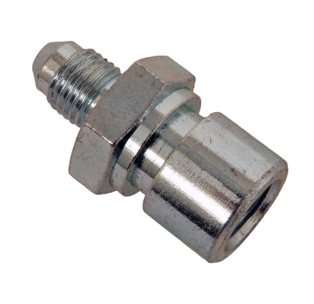 Fitting, Brake, Male -3 AN to Female 10mm x 1.0 Bubble Flare, Steel, Zinc Plated, Each