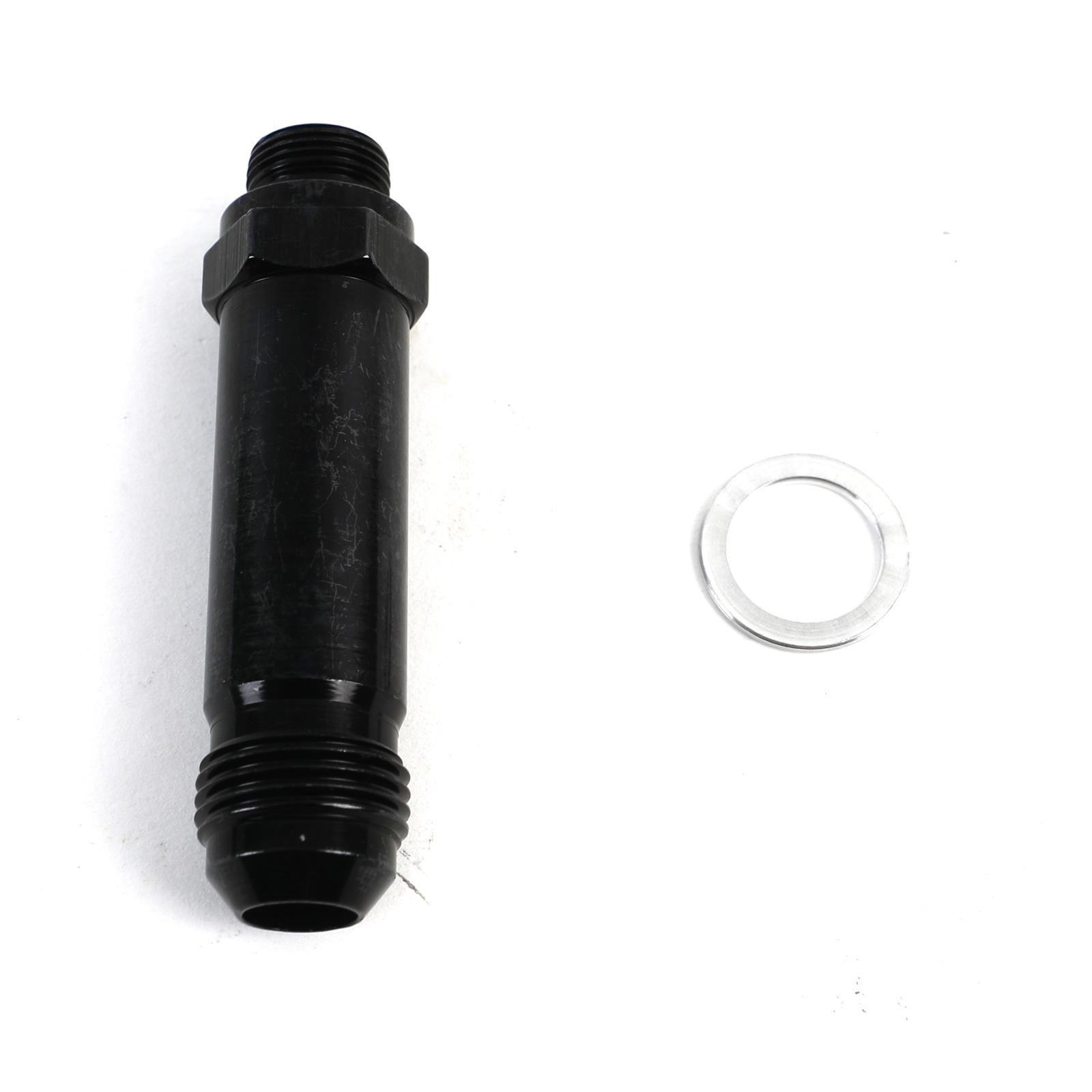 Fitting, Carburetor Inlet, Straight, Male -8 AN to 9/16-24 in. Male Thread, Aluminum, Black Anodized, Each