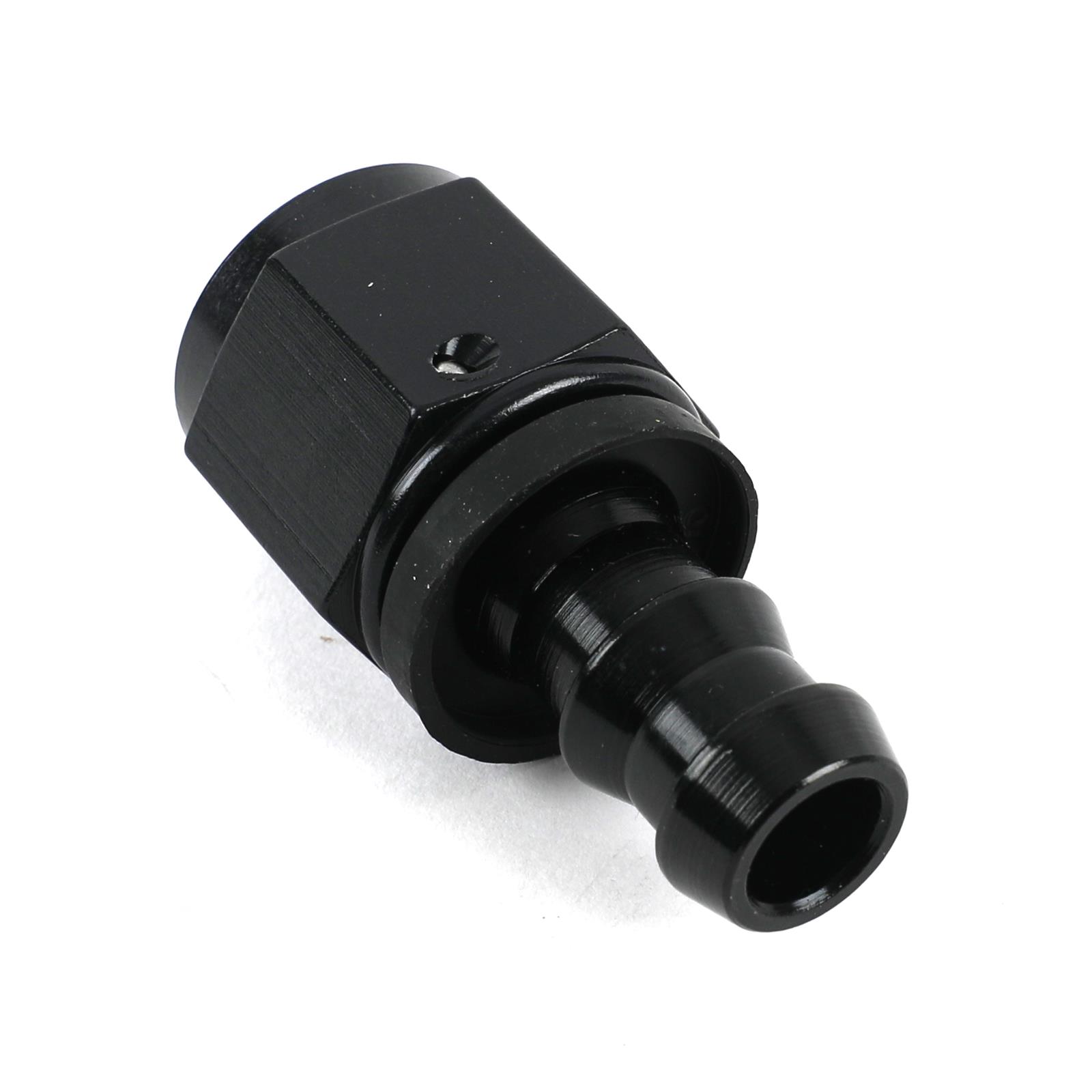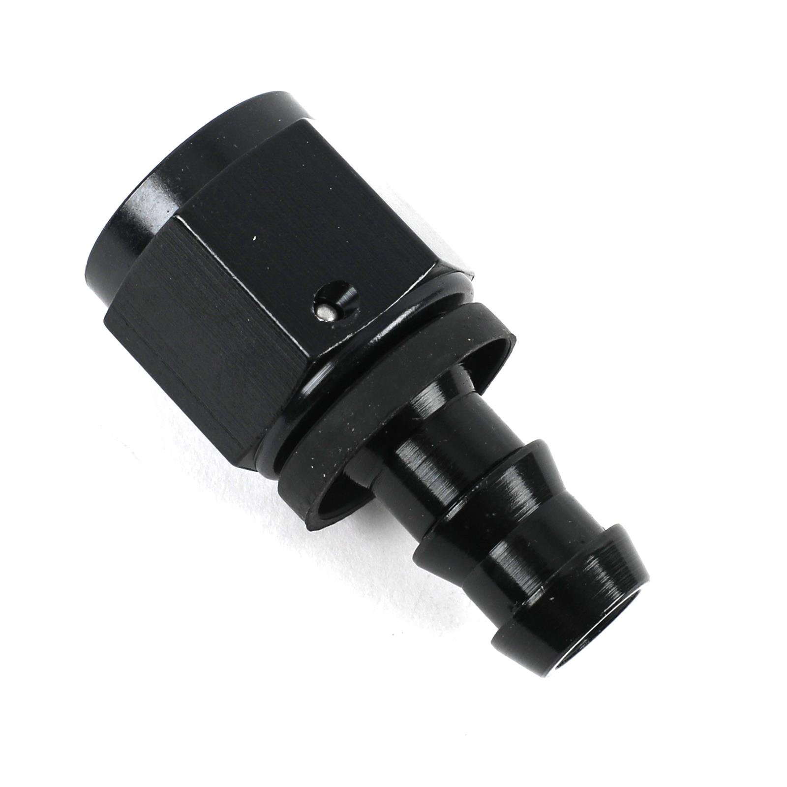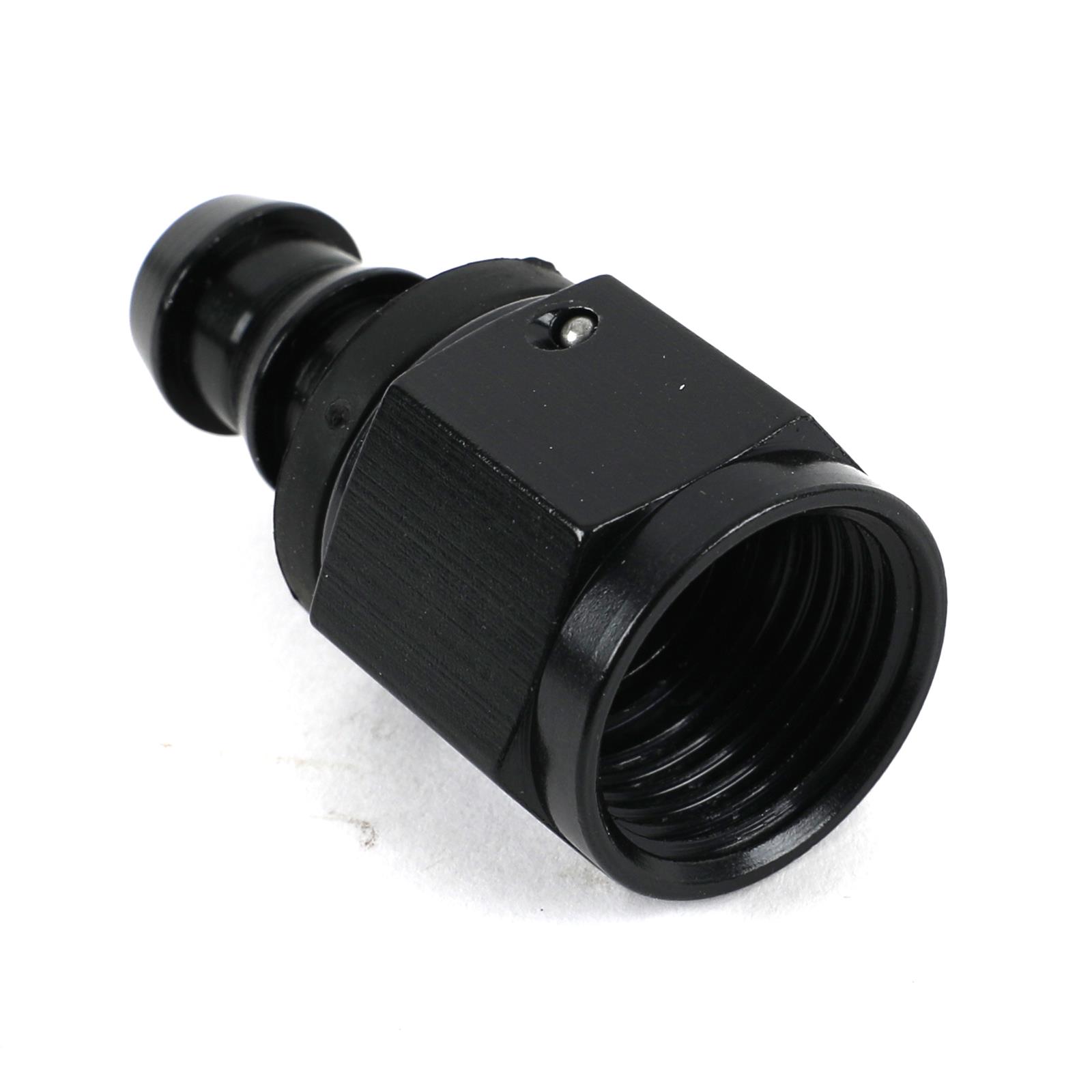 Fragola Performance Systems Series 8000 Push-Lite race hose ends feature a unique one-piece design that eliminates two brazed joints, minimizing potential leakage and improving flow and appearance. The correct AN-specified J-thread is used for ease of installation and trouble-free re-use. A lightweight polymer cap provides positive stop for hose installation and covers the cut end of the hose. Hose barb dimensions are per SAE standards and they have a tapered nipple for easy alignment and installation. Their bright-dip anodizing provides a show-quality finish. Fragola Performance Systems Series 8000 Push-Lite hose ends are manufactured from aerospace-quality aluminum and machined to mil spec tolerances.