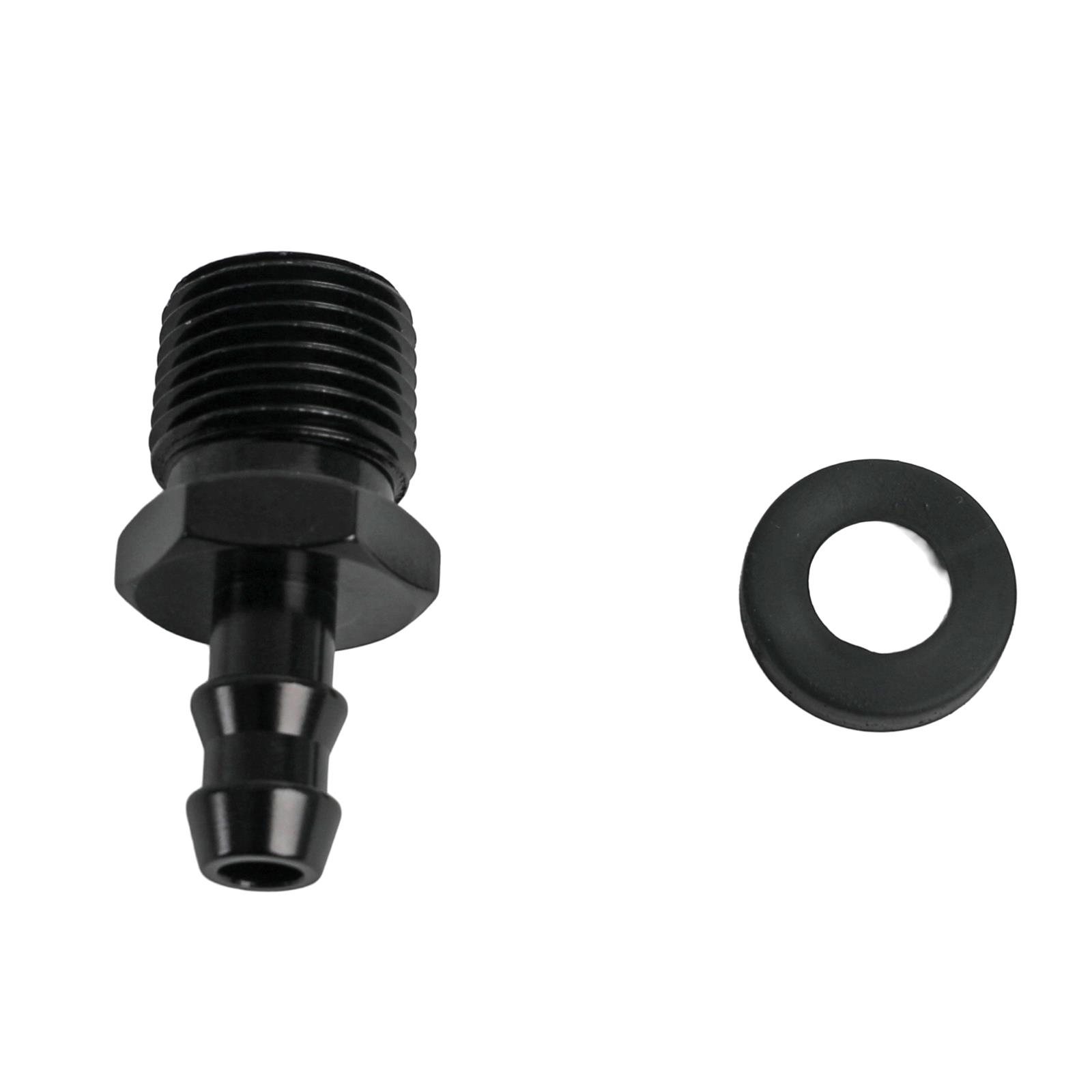 Fragola Performance Systems Series 8000 Push-Lite race hose ends feature a unique one-piece design that eliminates two brazed joints, minimizing potential leakage and improving flow and appearance. The correct AN-specified J-thread is used for ease of installation and trouble-free re-use. A lightweight polymer cap provides positive stop for hose installation and covers the cut end of the hose. Hose barb dimensions are per SAE standards and they have a tapered nipple for easy alignment and installation. Their bright-dip anodizing provides a show-quality finish. Fragola Performance Systems Series 8000 Push-Lite hose ends are manufactured from aerospace-quality aluminum and machined to mil spec tolerances.